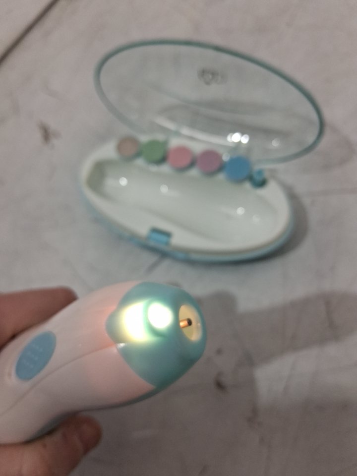 Please note that the extra attachments are missing - is replaceable: https://www.amazon.ca/Baby-Royal-Angels-Replacement-Fingernails/dp/B07CH7LGRN?th=1 Tested for power.