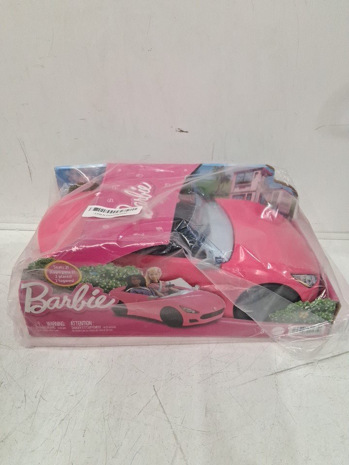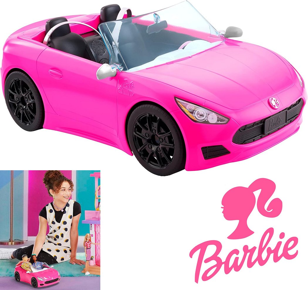Kids BARBIE CONVERTIBLE 2-SEATER VEHICLE WITH ROLLING WHEELS AND REALISTIC DETAILS - 12"L - 3 yrs & up - PINK (model: HBT92)