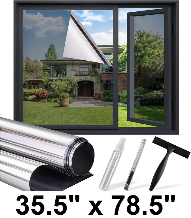Coavas One Way Privacy Window Film - 35.5" x 78.5" - Silver Black