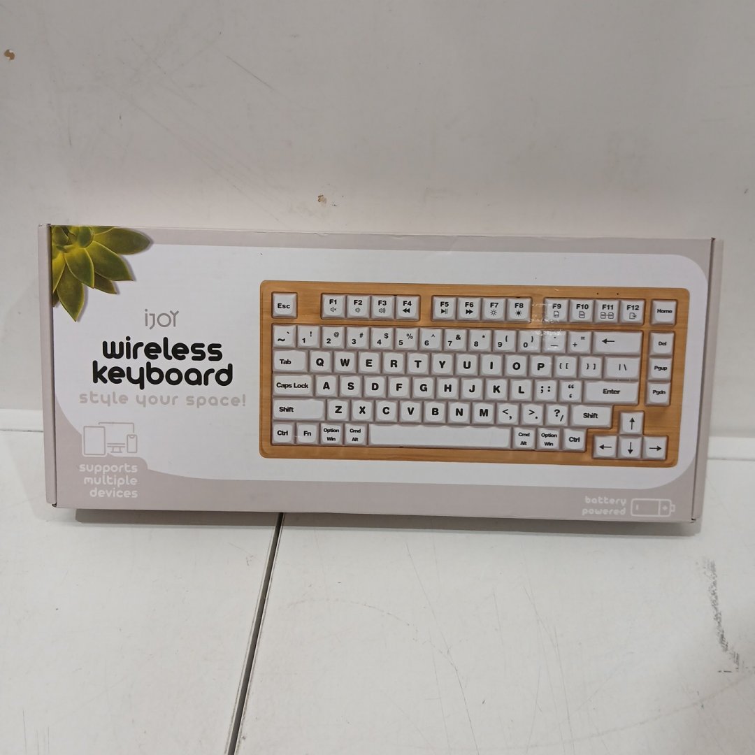 IJOY WIRELESS WOODEN KEYBOARD WITH BUILT-IN FOLDABLE KICKSTANDS - light wood/white (MODEL: IJ10499-TT)