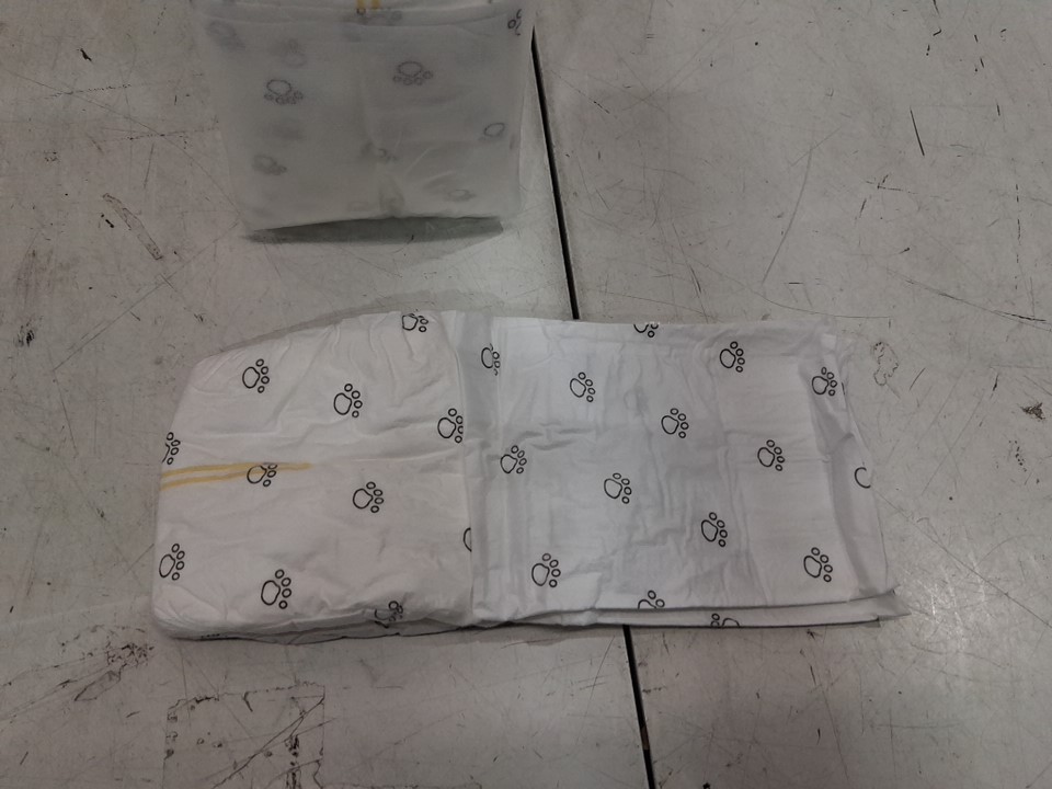 50PK AMAZONBASICS DISPOSABLE MALE DOG WRAP DIAPERS - SMALL - WHITE/PAW PRINTS