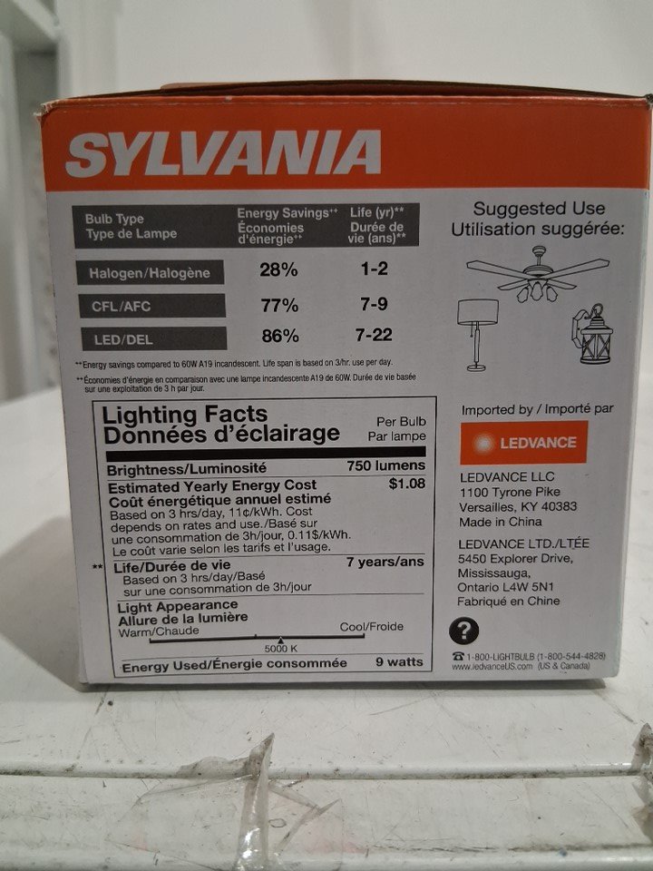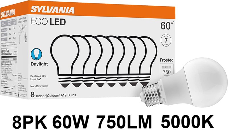 8PK Sylvania ECO LED A19 Light Bulbs - 60W - 750 Lumens - 5000K - Daylight