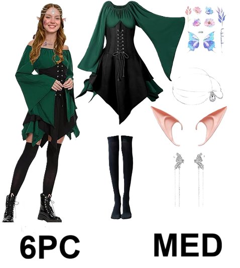 6PC Women's Skefoli Medieval Elf Costume - Medium