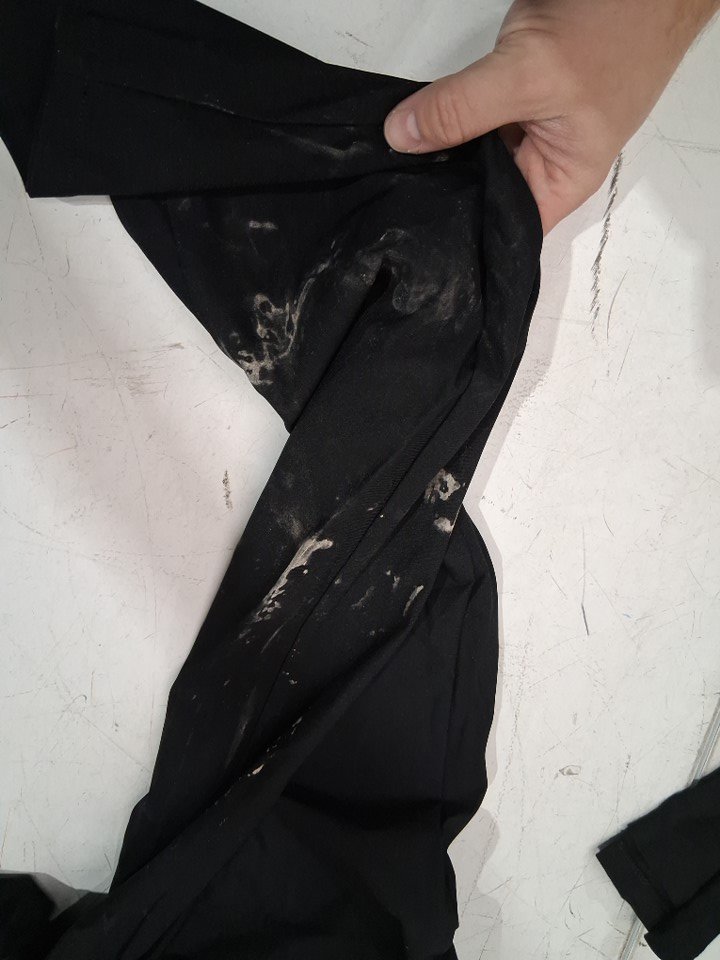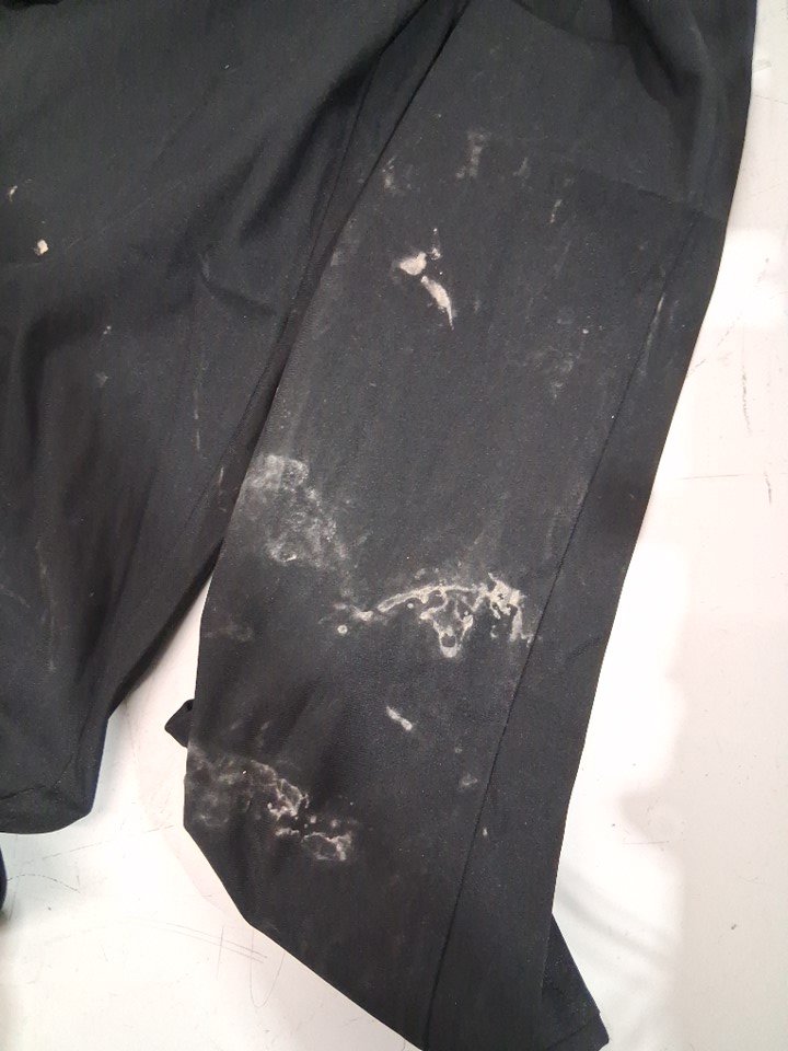 There is some mud stain that are present on the legs of this garment a wash should remove these stains.