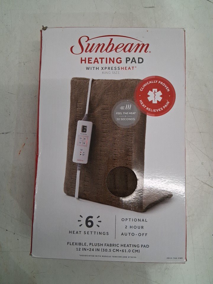 SUNBEAM XPRESSHEAT 6-SETTING PLUSH HEATING PAD - KING SIZE (12" X 24") - BROWN (MODEL: 2013-760-CNR)