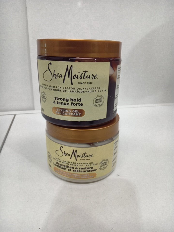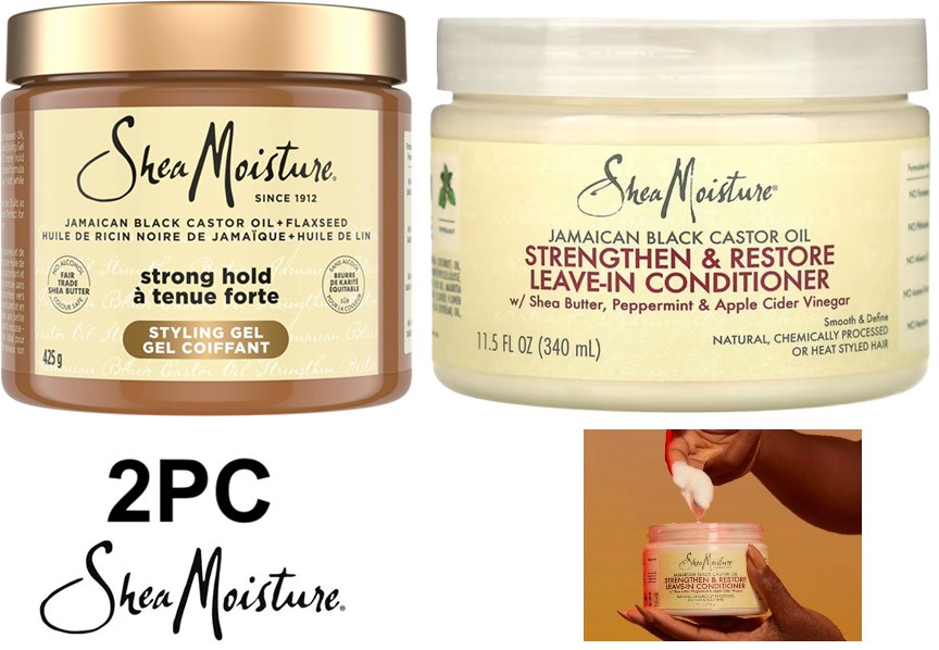 2PC SHEA MOISTURE STRONG HOLD STYLING GEL & LEAVE IN CONDITIONER - 340ML/ 425G