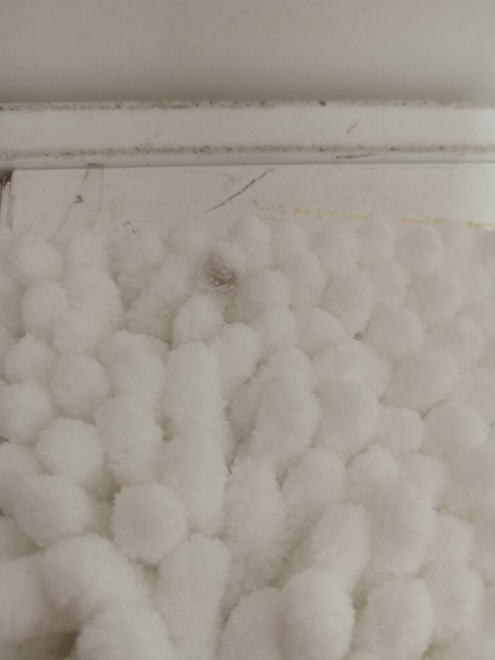 upon inspection we have found some small black blemish marks on this item, this seems to be due to dust from shipping and handling, see photos below.