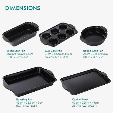 5pc Navaris Nonstick Bakeware Set - assorted sizes - black