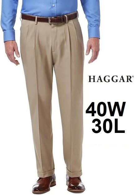 men's haggar Iron Free Premium straight fit DRESS PANT - 40W x 30L - beige/tan (style: 1986565)