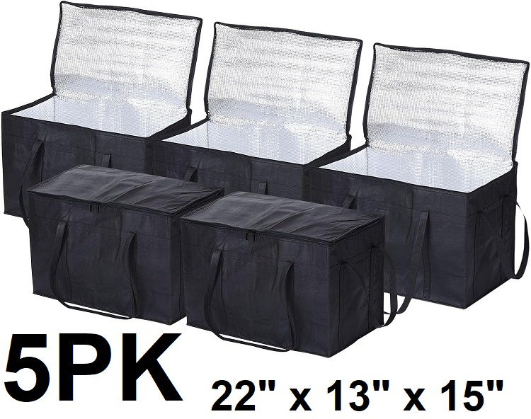 5PK PATIKIL Insulated Reusable Grocery Bag Cooler Bags with Zipper - 22" x 13" x 15" - black