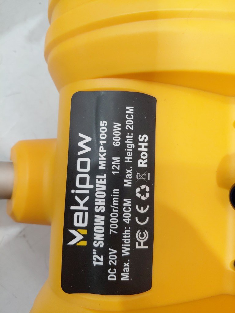 mekipow cordless electric snow shovel for DeWalt 20V Battery - *tool only* - 12" - yellow/black - (model: mkp1005)