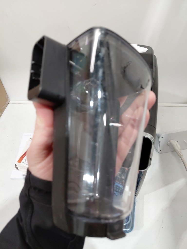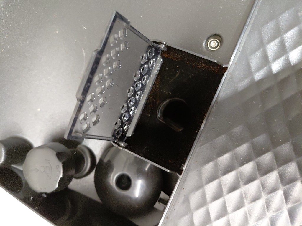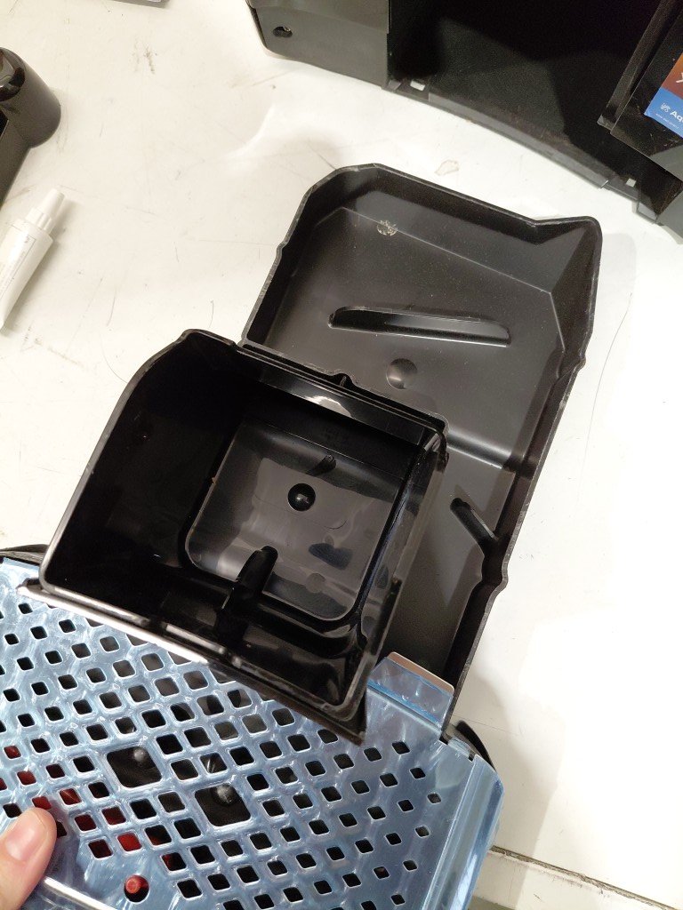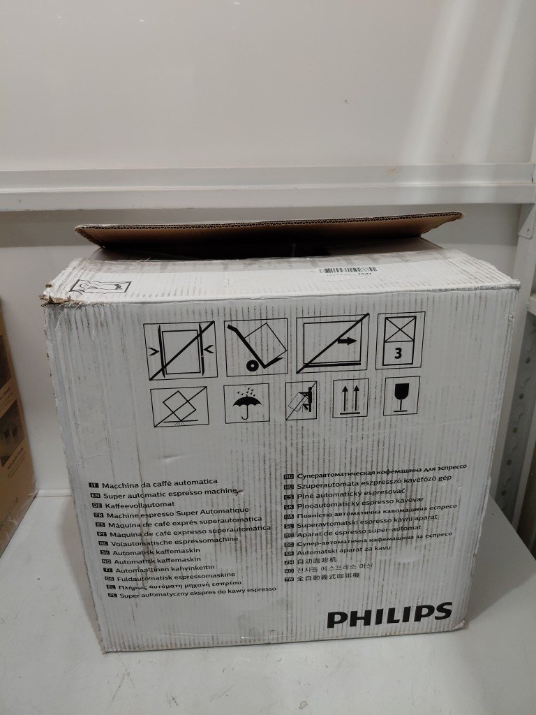 Seal on hopper is slightly ripped, doesn't affect use of item, can be replaced. Item has some coffee residue inside from previous use. Item will need to the thoroughly cleaned before use (see photos) tested for power only