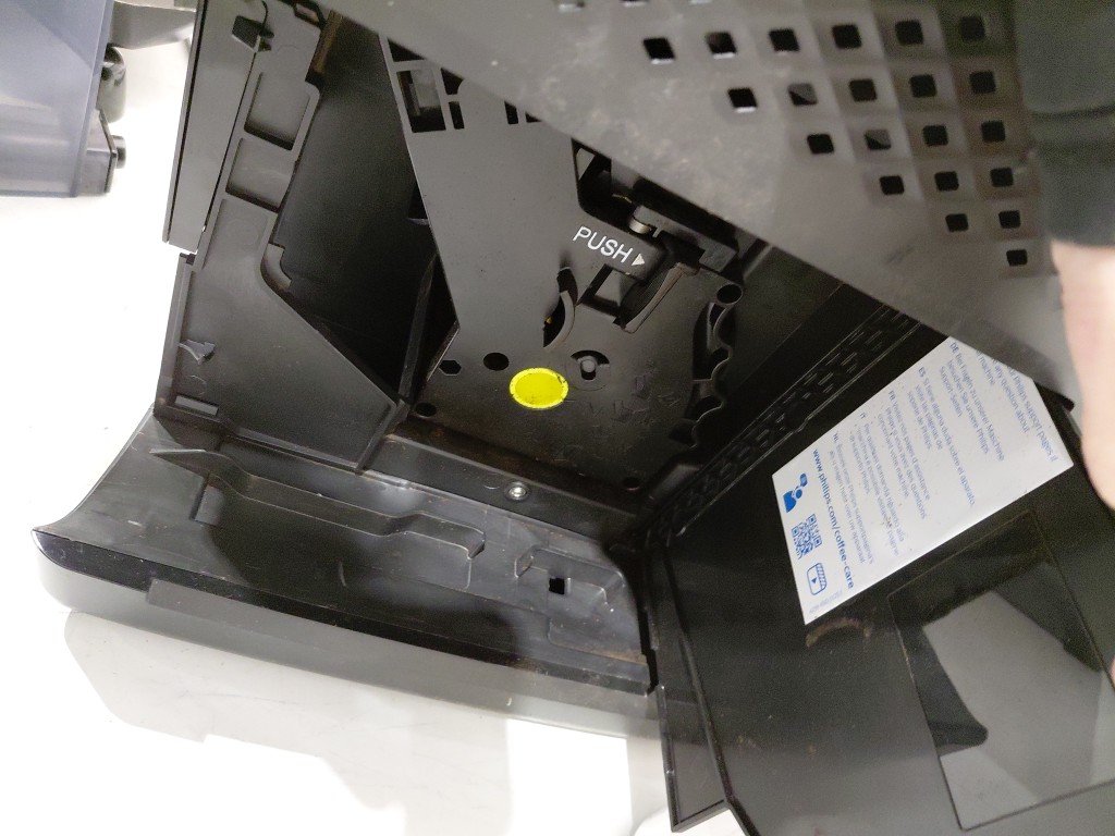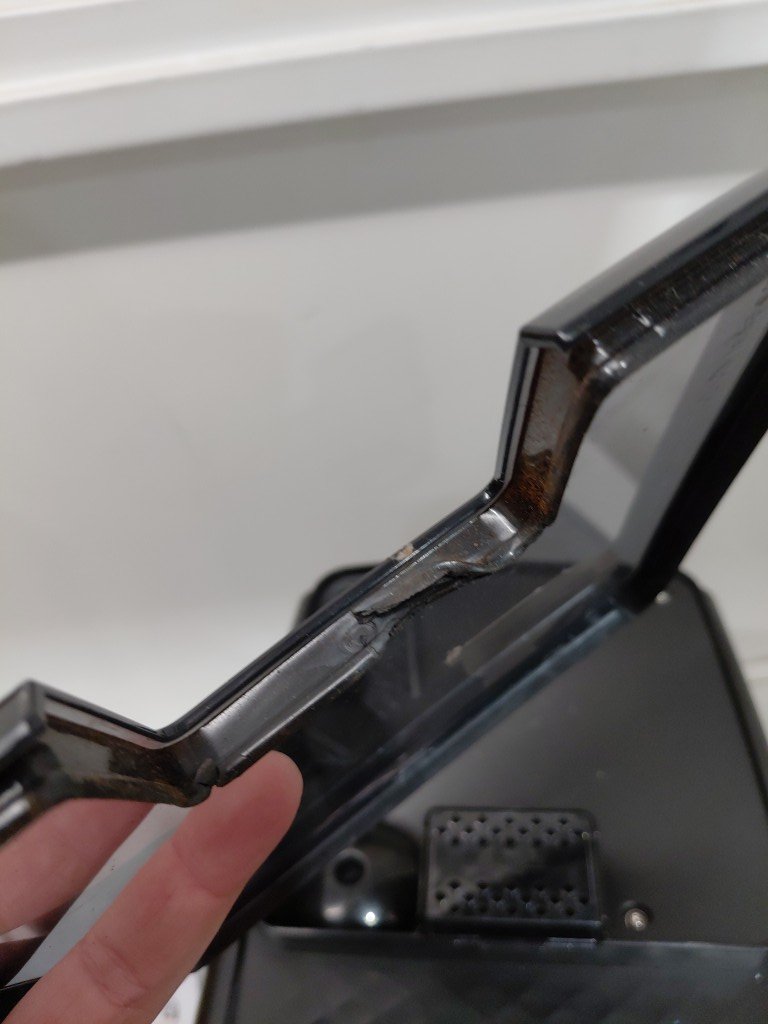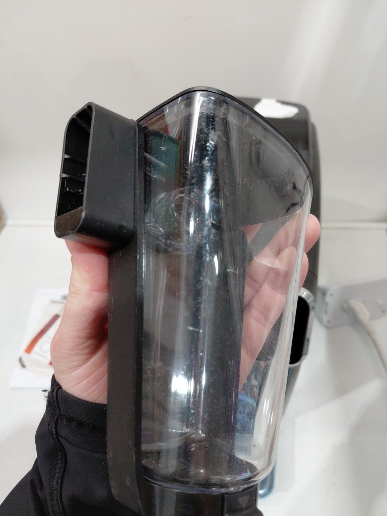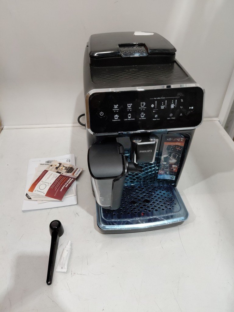 Seal on hopper is slightly ripped, doesn't affect use of item, can be replaced. Item has some coffee residue inside from previous use. Item will need to the thoroughly cleaned before use (see photos) tested for power only
