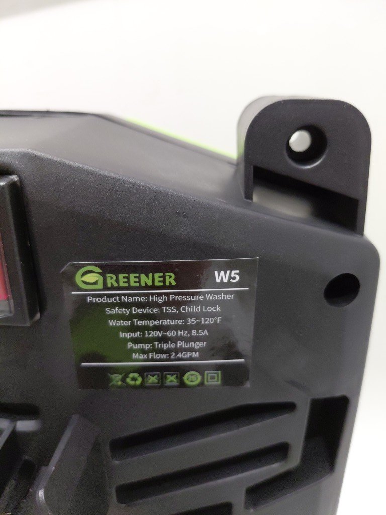 Greener Corded Electric Pressure Washer with 4 Quick Nozzles - 2500PSI - 2.4GPM - Green/Black (Model: W5)