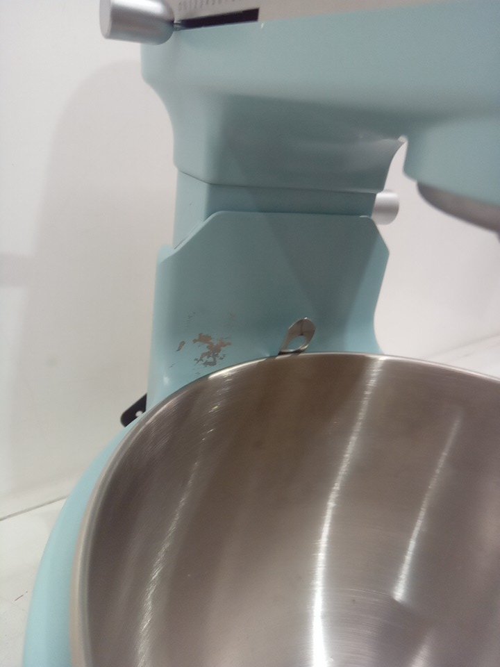there is minor peeling of the paint on the item and the bowl has marks on it due to being previously used - and the accessories have chipping. see photos.