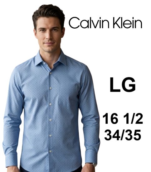 MENS Calvin Klein STEEL + REGUALR FIT DRESS SHIRT - 16 - 34/35 - LARGE- DARK BLUE (STYLE: 3473841)