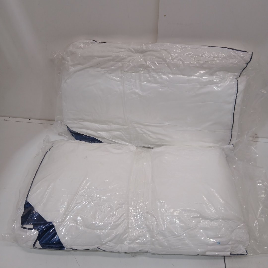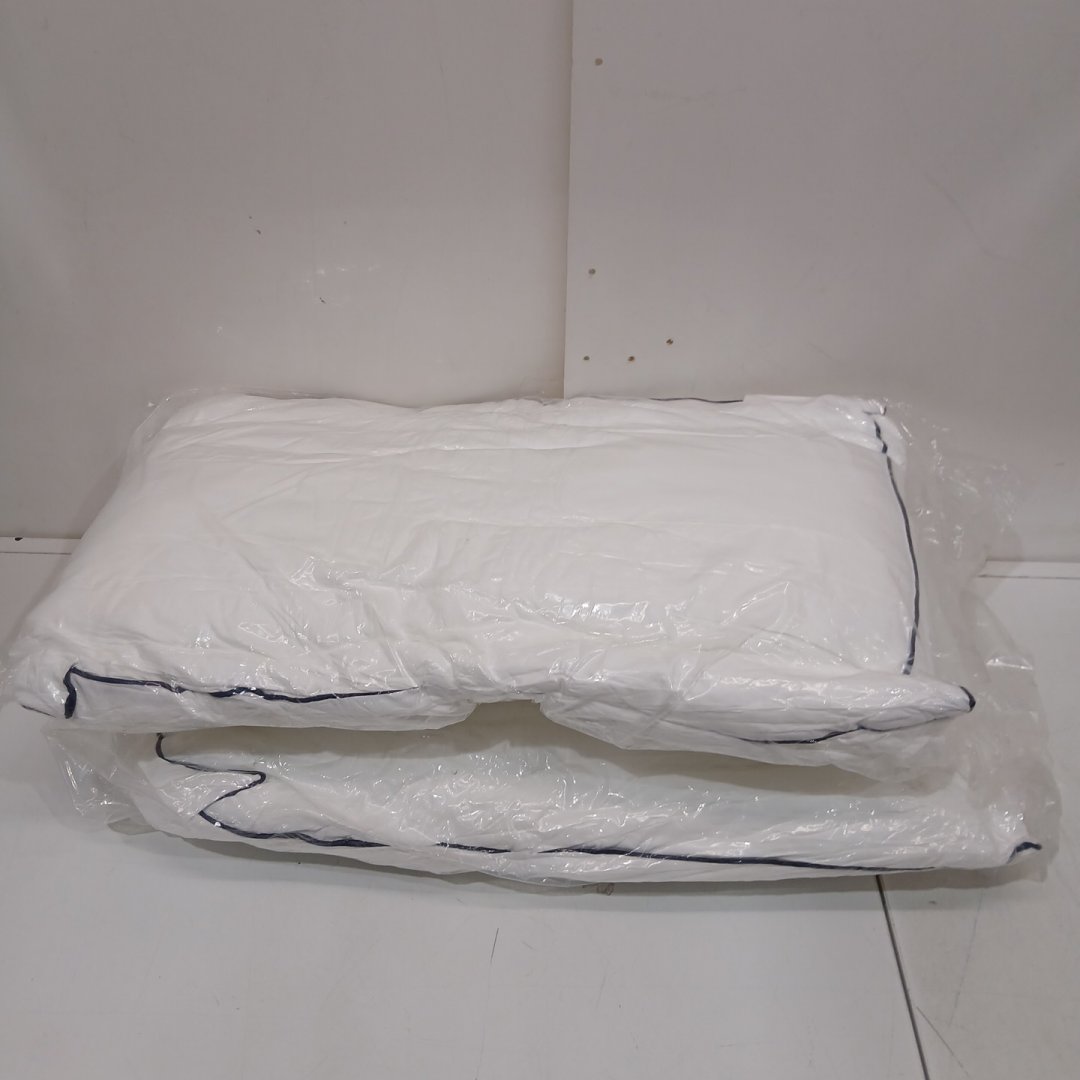 2pk meoflaw SOFT MICROFIBER HOTEL QUALITY PILLOWS - 19" X 26" - WHITE WITH BLUE TRIM