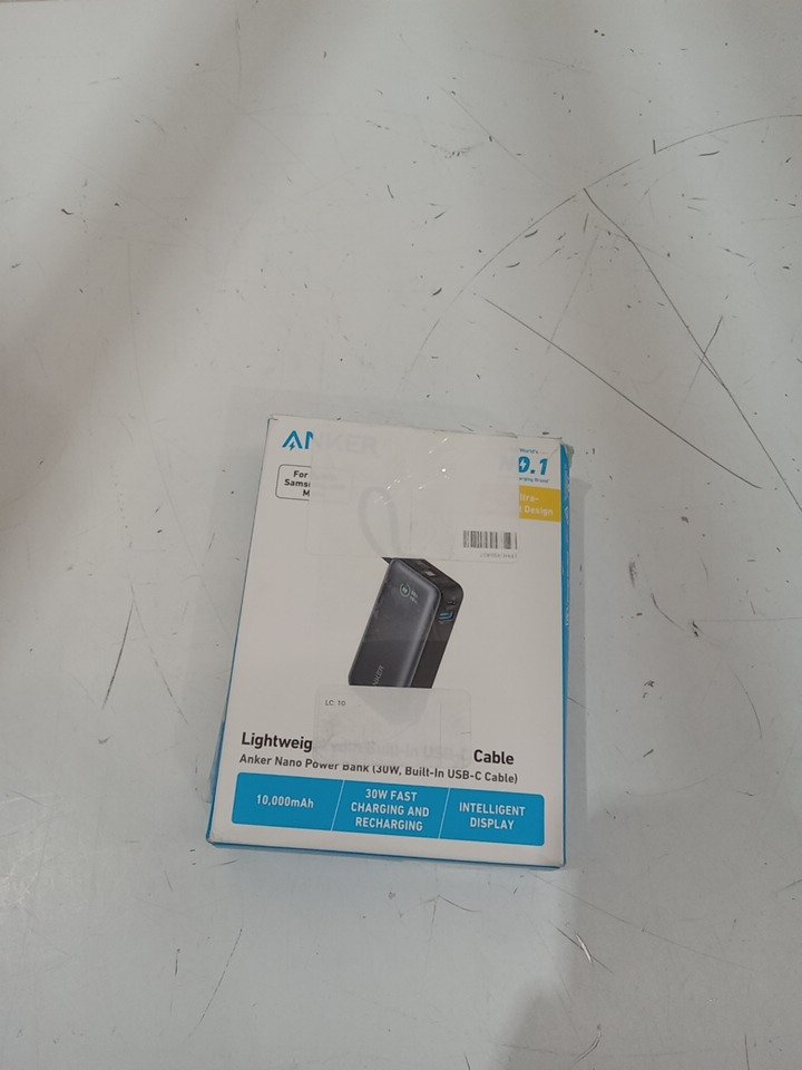 Anker Nano Portable Power Bank with Built-in USB-C Cable - 10000mAh, PD 30W Max Output with 1 USB-C, 1 USB-A - black (model: a1259h11)