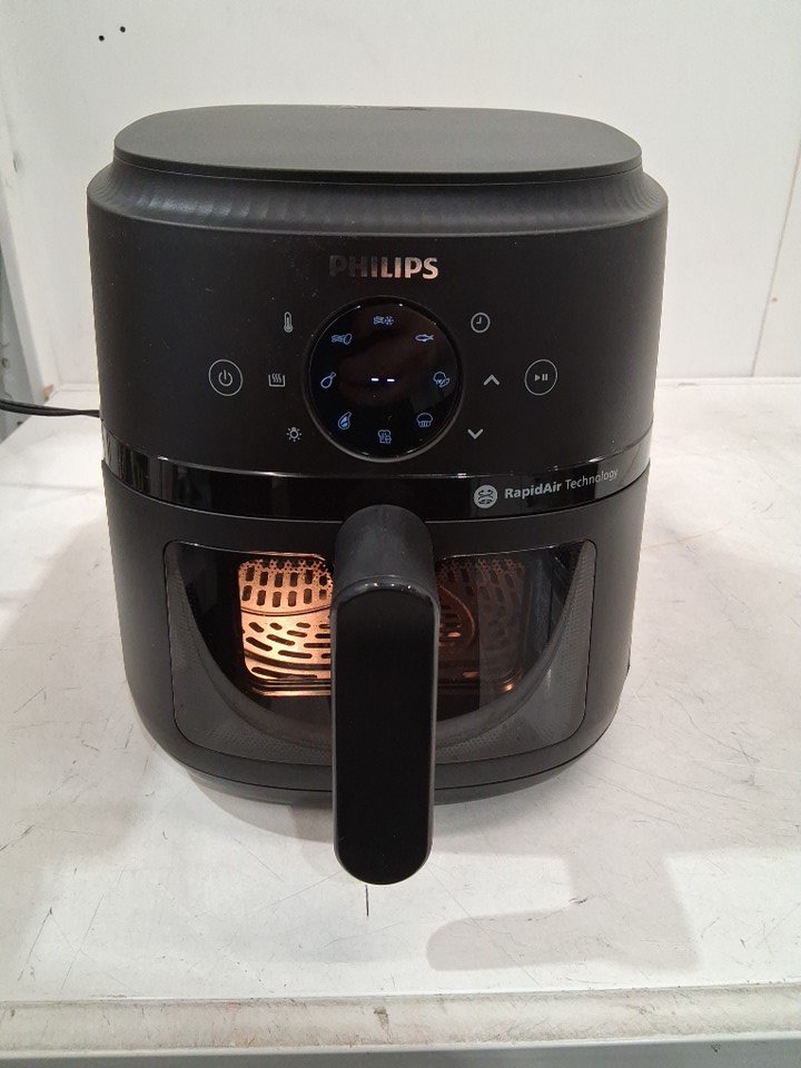 There are some stains and food residue on the inside of the fryer indicating some prior use, but appears to be in good condition besides, with no obvious damage or issues visible - see photos. Tested for power and basic function.