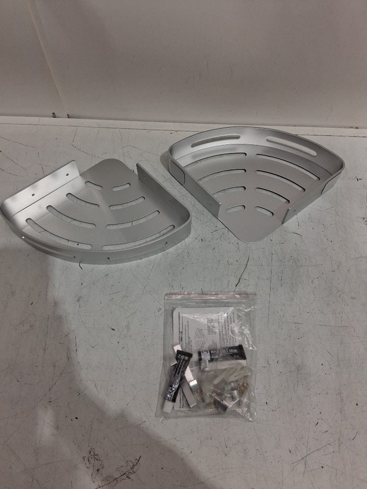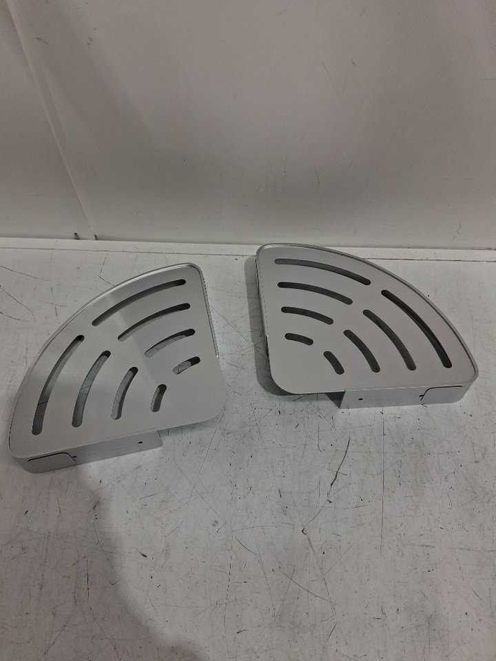2pk Rustproof corner Aluminum shower caddy shelves with hooks - silver