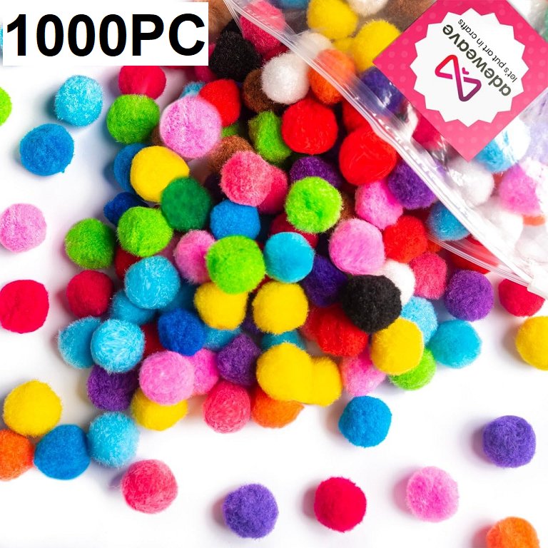 1000pc adeweave assorted size of pom poms pack - multicolor