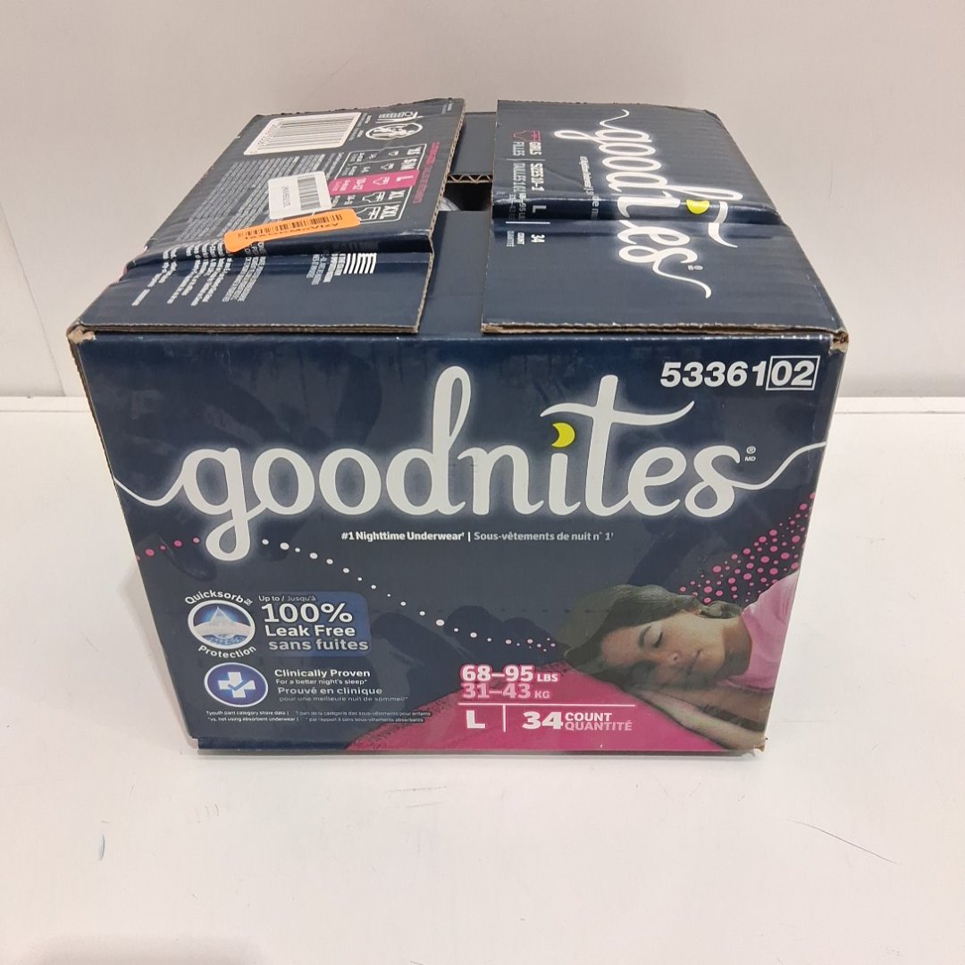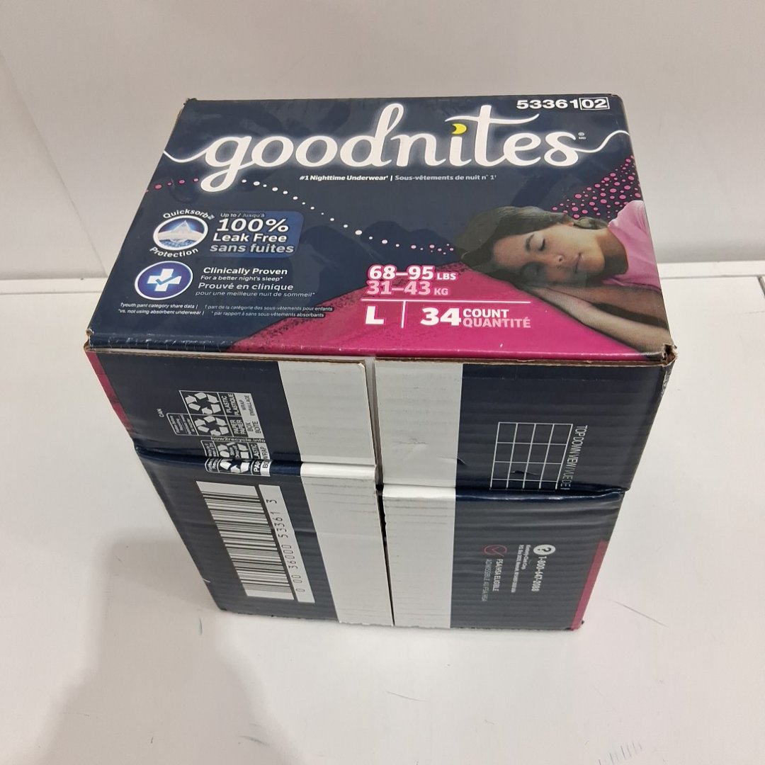 34pk girl's Goodnites Nighttime Bedwetting Underwear - LARGE (68-95 lb)