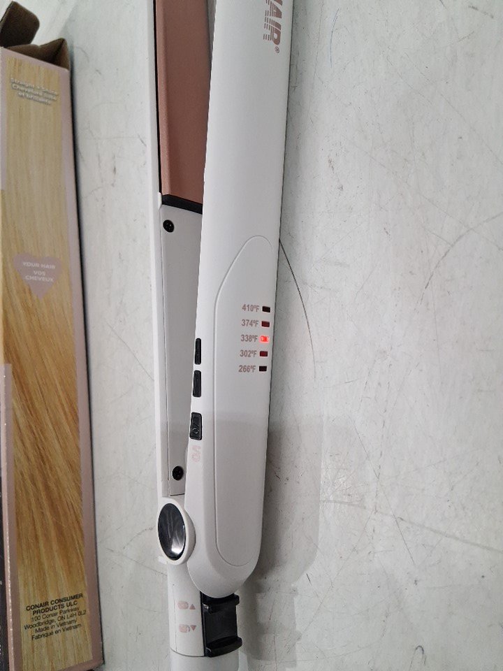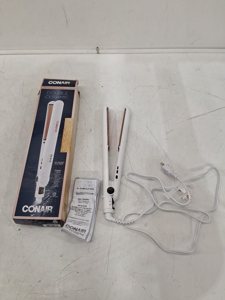 CONAIR DOUBLE CERAMIC STRAIGHTENER FLAT IRON - 1" - WHITE/ROSE GOLD - (MODEL: CS221NC)