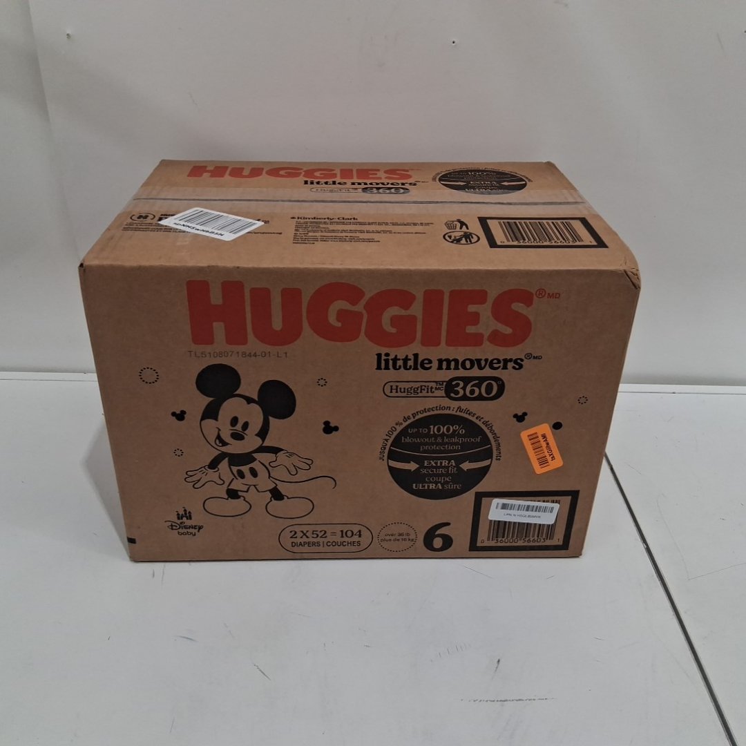 104pk Huggies Little Movers HuggFit 360° Waistband Baby Diapers - SIZE 6 (35+ LBS)