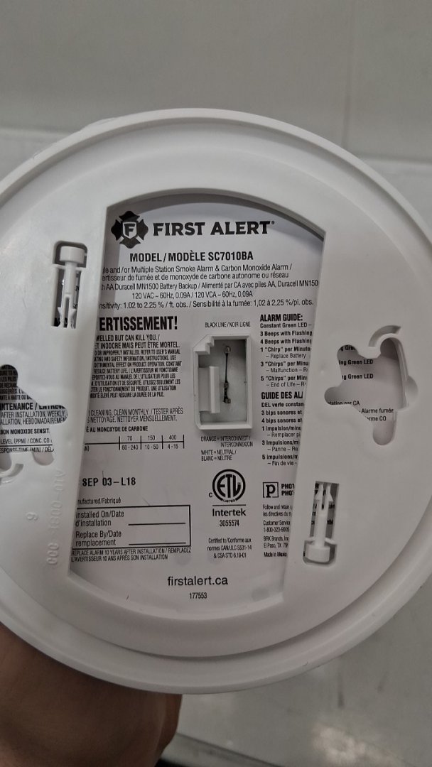 RESIDEO FIRST ALERT HARDWIRED 2-IN-1SMOKE AND CARBON MONOXIDED ALARM WITH BATTERY BACKUP - 120V - WHITE (MODEL: SC7010BA)