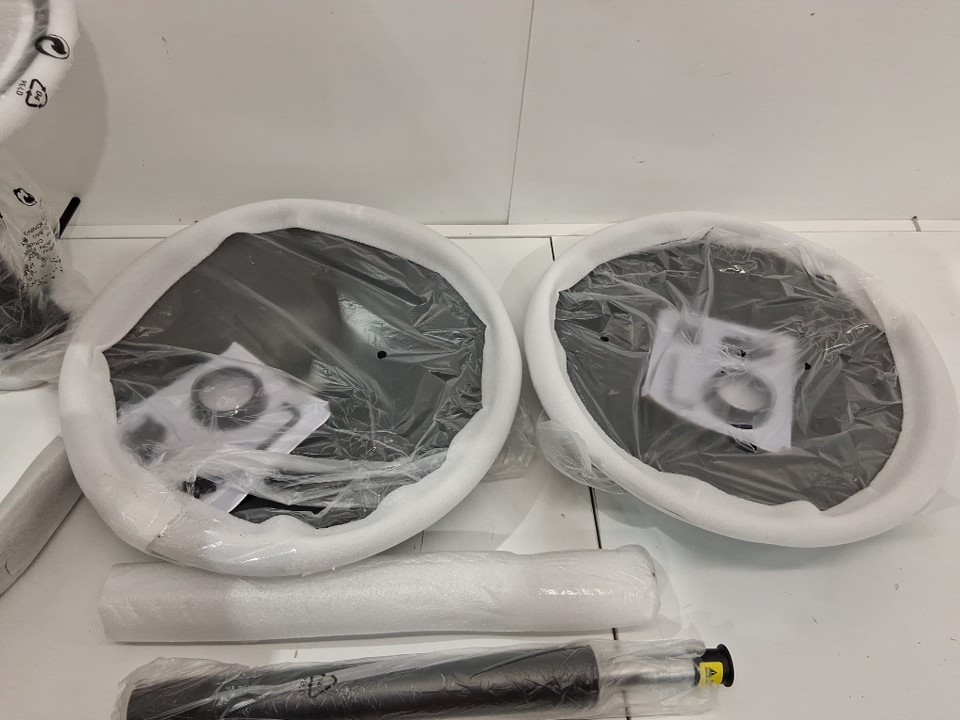 Chairs appear completely new, however one of them is missing both its gas lift and the L bracket for connecting the seat and back.