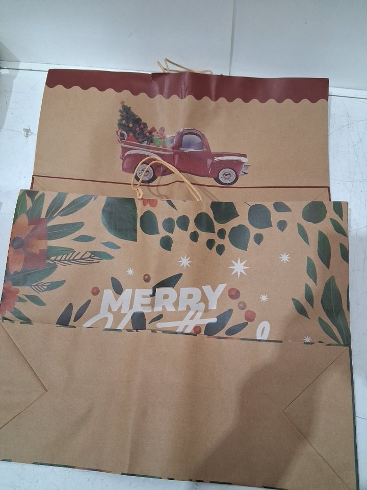 12pc extra large kraft christmas paper gift bags with handles - 20" x 15" - multicolour
