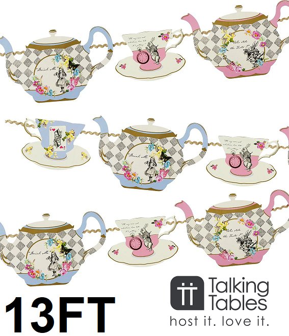 talking tables Alice in Wonderland Teapot Bunting garland - 13ft - multicolor