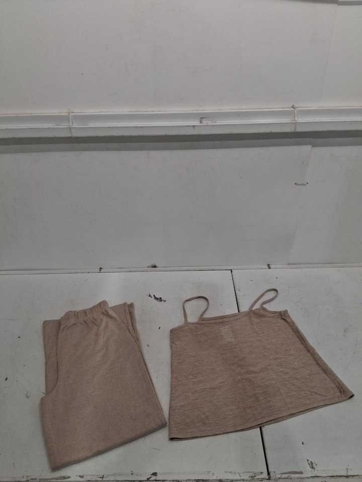 2PC WOMENS LEMON COZY BRUSHED SLEEP pajama pants and flowy 3/4 SLEEVE top - Extra Small - TAN (STYLE: 1925530)