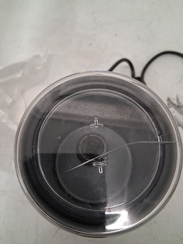 item has some liquid residue inside and on the outside, the top lid has a crack but doesnt affect function.