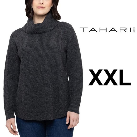 TAHARI MERINO BLEND turtleneck SWEATER - xxl- grey (style: 2707004)