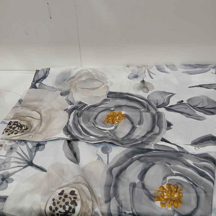 (1 PANEL) Polyester Standard Linen Curtain Panel - GREY/WHITE/GOLD/FLOWERS