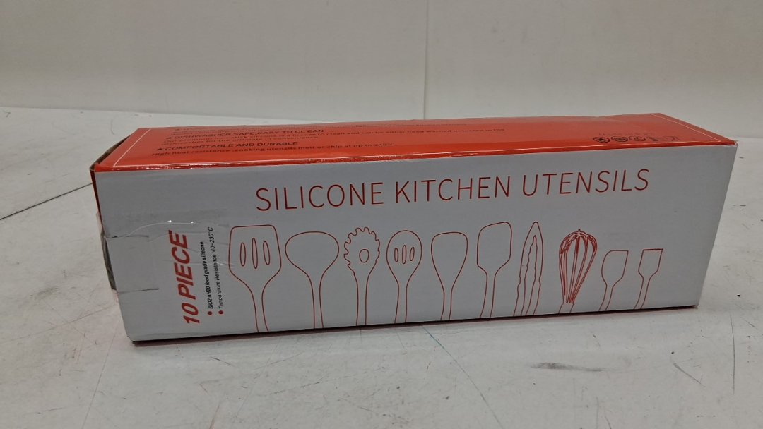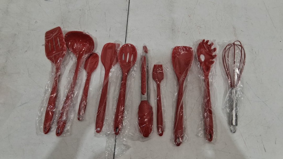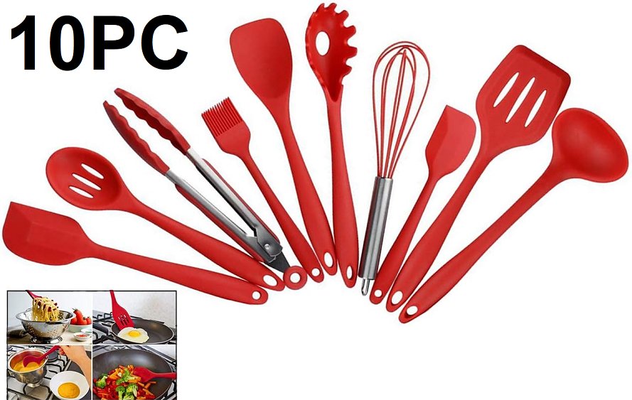 10pc easthua Nonstick heat-resistant Silicone Kitchen Cooking Utensils Set - red/silver