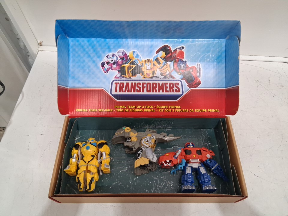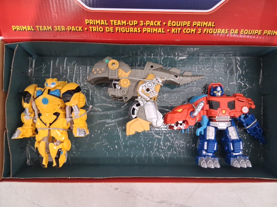 3pk hasbro transformers primal team-up with optimus prime, bumblebee and grimlock - 4.5" - assorted colors (model:f447)