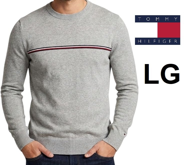 MENS TOMMY HILFIGER Classic Crewneck Sweater - LARGE - grey heather (STYLE: 1719897)
