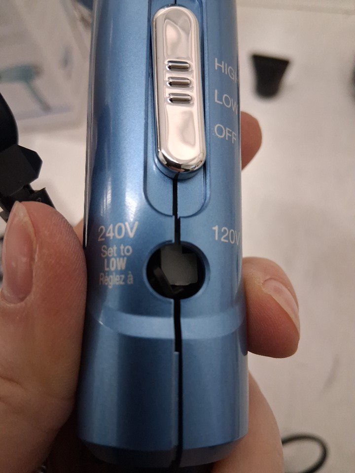 manual dual voltage switch is pushed in and unusable.