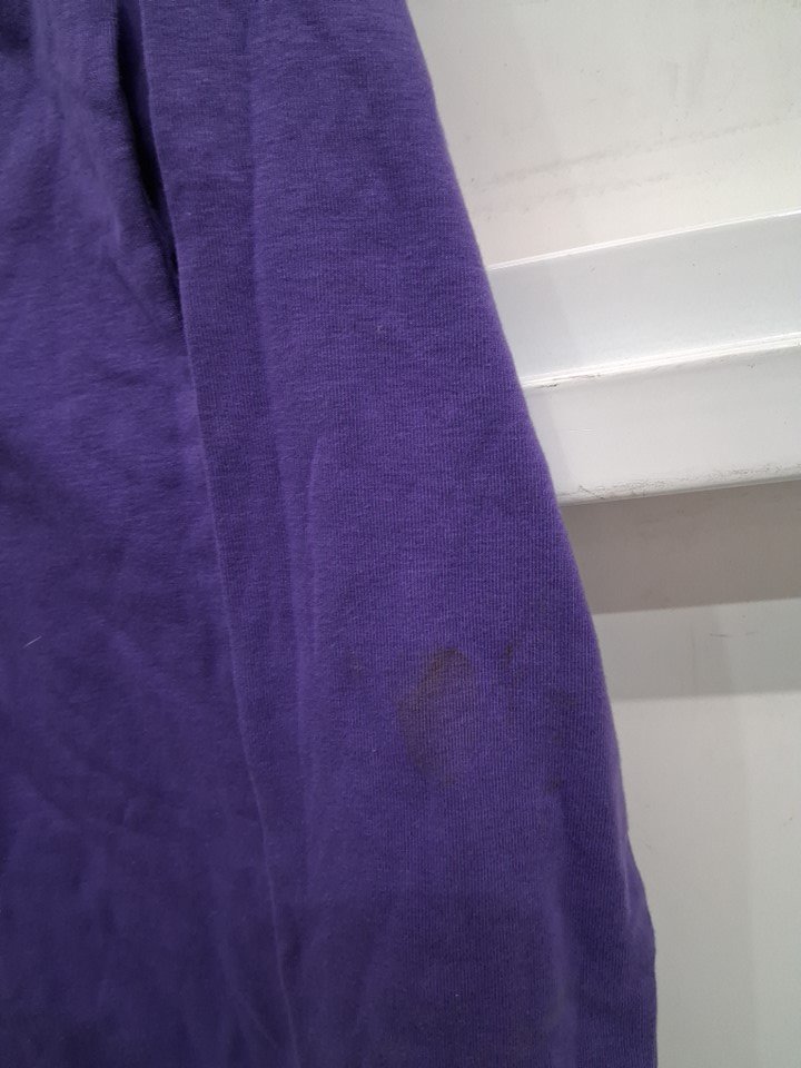 item ha some light markings on sleeves and bottom and back of shirt likely from loose shipping