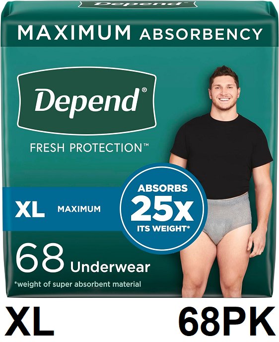 68PK MENS DEPENDS Fresh Protection DISPOSIBLE Incontinence Underwear - EXTRA LARGE - GREY - (MODEL:5420403)