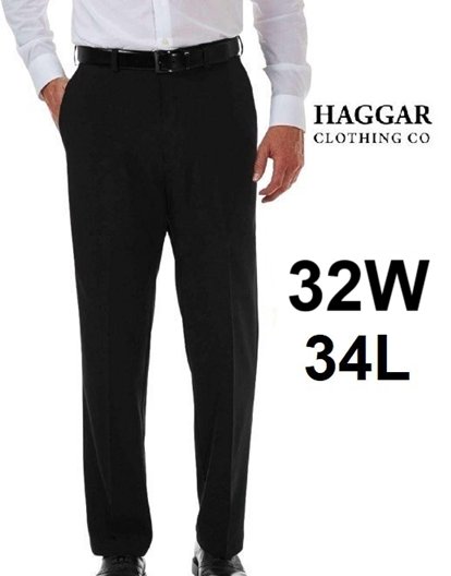 Men's Haggar 365 flex waistband dress pants - 32w x 34l - black (style : 1800936)
