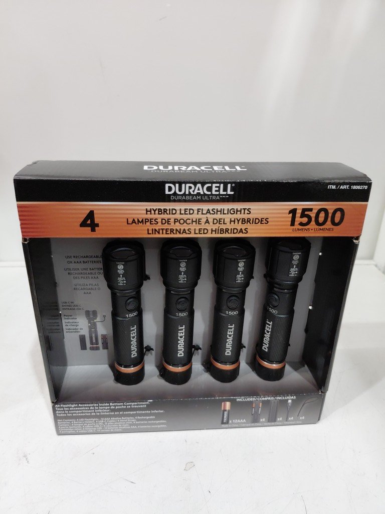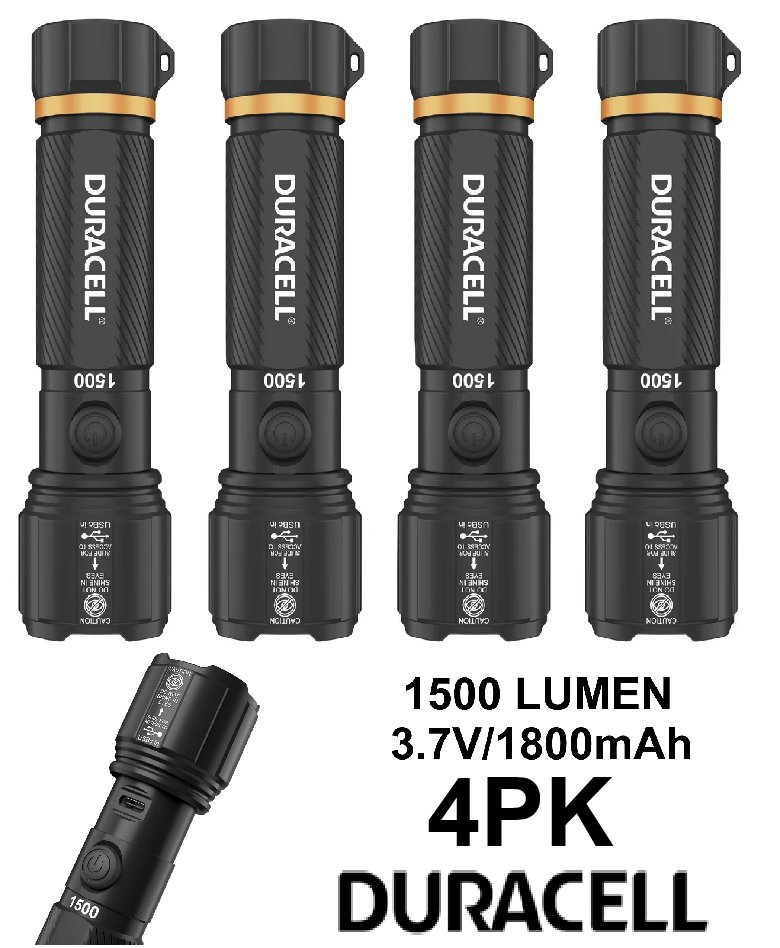 4PK Duracell RECHARGEABLE Flashlight pack - 1500 Lumen, 3.7V/1800mAh BATTERY (MODEL:1806270)