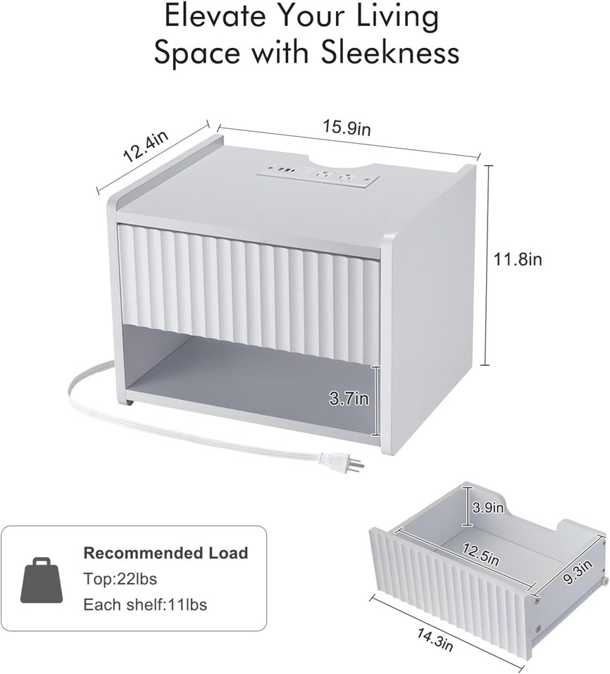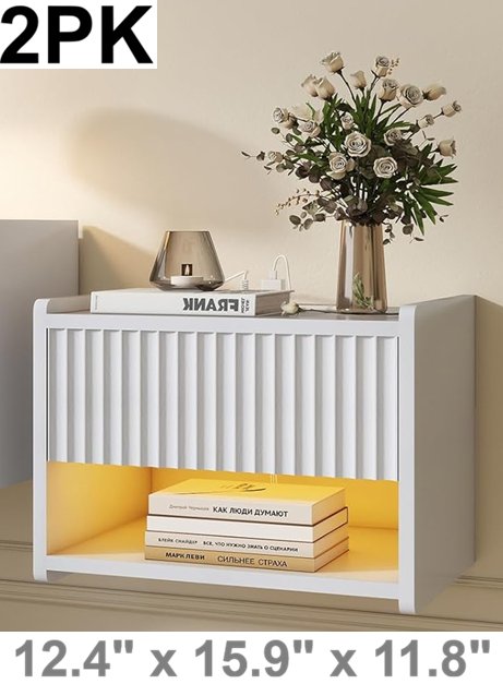 2PK LyncoHome Floating fluted nightstand drawers with charging station - 12.4" x 15.9" x 11.8" - white - (Model: LHNS149)