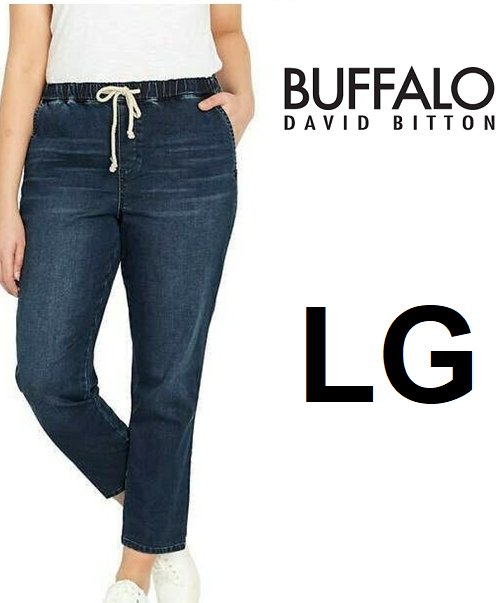 Women's Buffalo Pull on Denim Joggers Elastic Stretch Waist Jeans with Pockets - LARGE - DARK Blue (Style: 1841918)