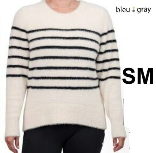 WOMEN'S BLEU GREY EYELASH STRIPED CREW NECK SWEATER - SMALL - WHITE BLACK (STYLE:3815500)