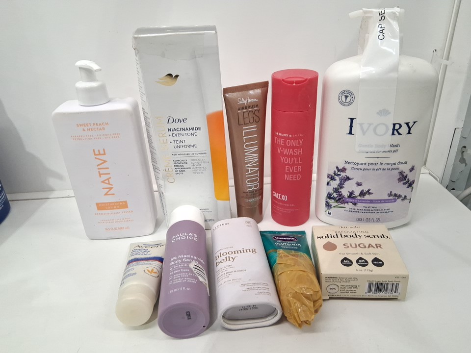 10 Assorted body products - assorted brands, sizes and types - body wash / body scrub / lotion