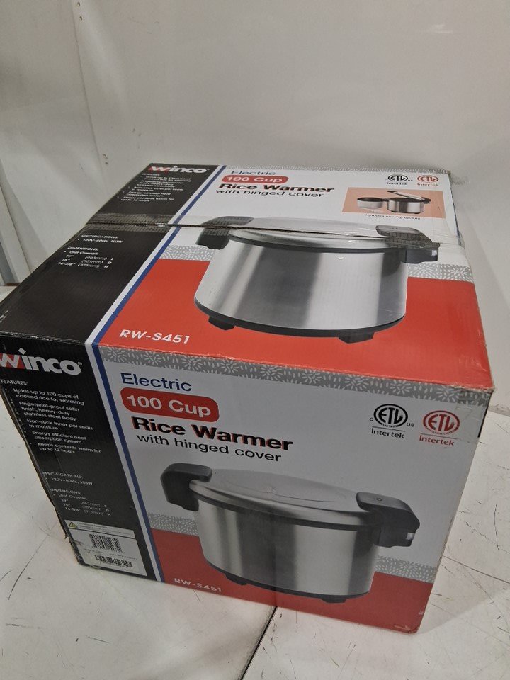 WINCO Electric Rice Warmer with Hinged Lid - 100-Cup - silver/black (MODEL: RW-S451)
