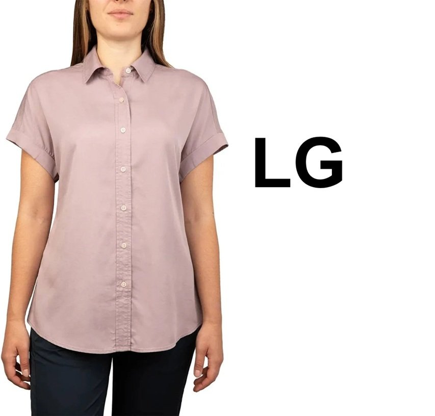 women's tilley Chambray Short Sleeve Blouse - LG - pink (style: 2042002)